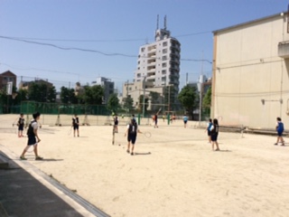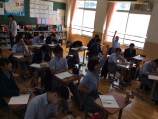 3年生授業の様子。2組の社会は、世界恐慌と各国の動きをスターリンの経済政策などに着目し、学びました。4組の社会は、大正デモクラシーは日本にどのような影響を与えたかを天皇や内閣総理大臣に焦点を当て、学びました。3組の体育はテニスで、今日はボレーを極めていました。