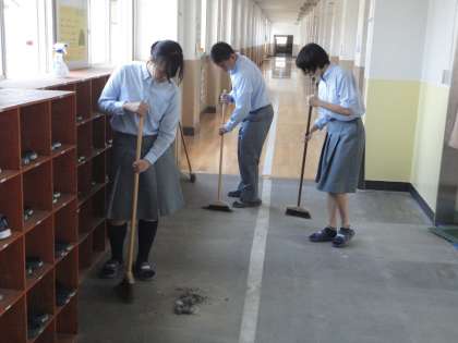 各教室の掃除、そしてトイレの掃除、学習室の模様替え、下駄箱のすのこ下の掃除。