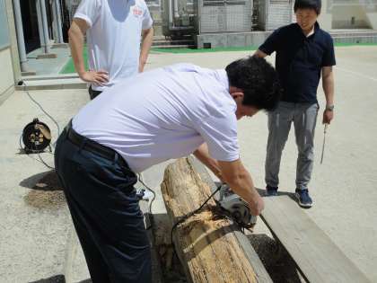 そのため、今までの丸太を撤去するために皆で切っています。