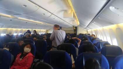 飛行機の中、みんなテンション高めです。修学旅行あるある、着陸時になぜか拍手。なんででしょう?