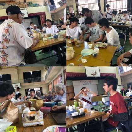 昼食ではお味噌汁、伊江島のお餅、ヨーグルトをご馳走になりました。
