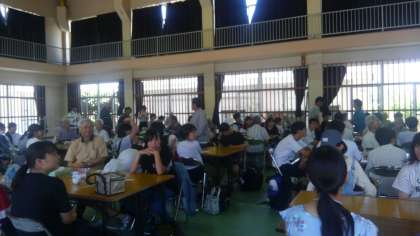 熱烈歓迎の昼食の様子。紅いものおまんじゅう、美味しかったです。