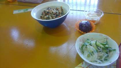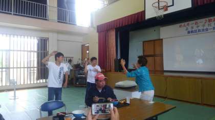 昼食時に流して下さったDVD に合わせて、見よう見まねで踊り始めたら、おばぁがジョイントして下さいました(笑)。