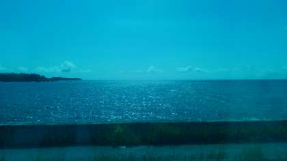 長いバスの道中、エメラルドグリーンの美しい海が見えました。