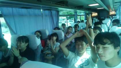 嘉数の丘では暑くて疲れたけど、バスの中では元気にユイマールを唄いました。