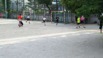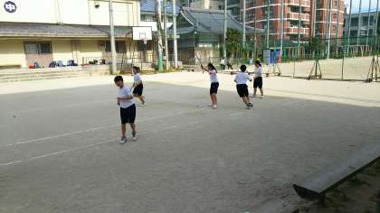 学校を守っている1年生は、部活動中です。先輩のいない間にしっかり練習。