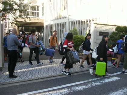 22日修学旅行の初日、早朝の集合でしたが、重たい荷物を持って、みんな元気に登校しました。6時過ぎには学校を出発!行ってきま〜す!