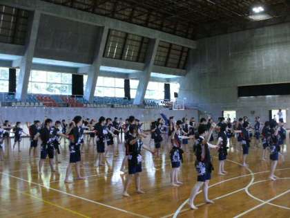 嘉数の丘での平和学習のあとは、民泊体験学習です。沖縄北部の東村までバスで移動。2泊3日お世話になる民家さんとの初対面です。入村式の前に、今まで京都で練習してきた京炎そでふれを民家の皆さんに披露しました。みんな精一杯踊りました!民家の皆さんも、とっても喜んでくださいました。3日間、どうぞよろしくお願いします!