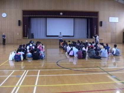 実行委員長・校長先生のあいさつのあと、学年の先生から諸注意を聞いて、いよいよ出発です。みんなで協力して、おいしいカレーをつくりましょう!