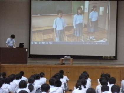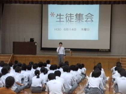次に、7月にあるめんせつ検定の紹介やスヤスヤタイムの紹介、ごみ0の日のお礼など、生徒会本部より報告がありました。