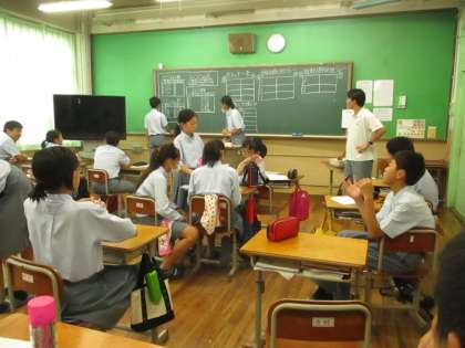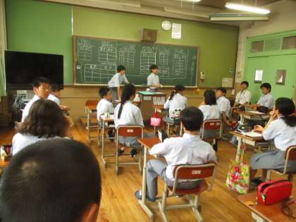 はじめての体育の部のエントリ—を相談中です。どの競技に出るかな?クラスや団のためにがんばろう。