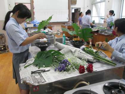文化部の女子チームで活動している生け花の日を、今日実施しました。