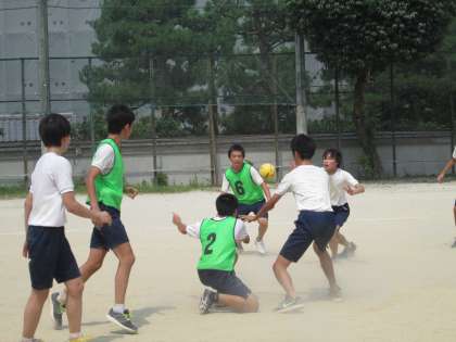 今日は、この1学期最後のお楽しみ(?)企画の球技大会でした。男子はグランドでハンドボール、女子は体育館でドッジボールを楽しみました。