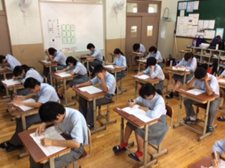 3年生3限目も夏休み明けテスト。教科は社会、理科、そして音楽学。