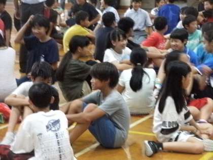 あいさつのあと、生徒会本部の声掛けでアイスブレーキングです。決められた人数のグループに分かれ、初めて会う他校の児童や中学生と自己紹介をしました。はじめは緊張気味でしたが、徐々に慣れてきた様子で、盛り上がりました!