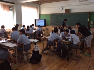 2組は公民で、イスラム圏、スタバのロゴを考えながら文化の特色をつかんだ。