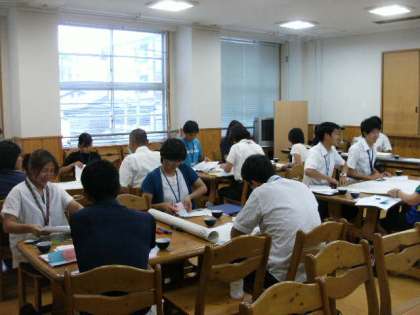 生徒が下校したあと、いきいき交流ルームで、先生方の研究協議会が行われました。「生徒の主体的な学びを引き出す指導の研究」というテーマで、指導者の発問や生徒の活動など、本日の授業を振り返りながら研究協議会が進められ、活発な意見交流が行われました。それぞれの先生方が、各校に持ち帰って、今後の授業改善に役立てていきます。