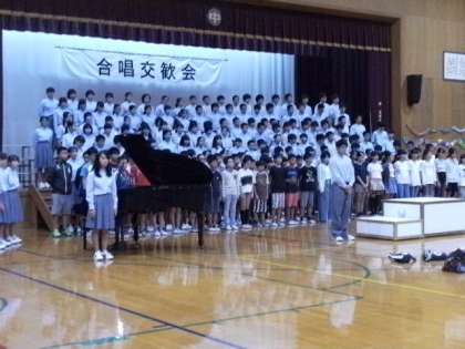 小学生〜中学生が一緒に声を合わせての大合唱です。迫力のある歌声が会場いっぱいに響き渡りました!