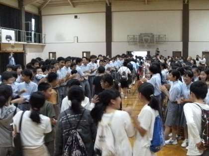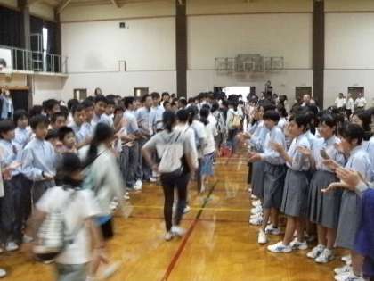 小中交流合唱交歓会が終了し、最後は中学生や保護者・地域の皆さんで花道をつくり、小学6年生をお見送りしました。