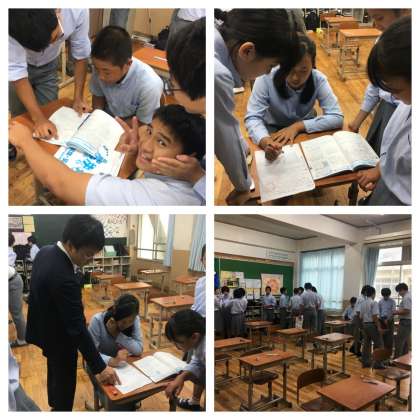 上の画像は、理科のテストが終わって数学のテスト前の休み時間の様子です。