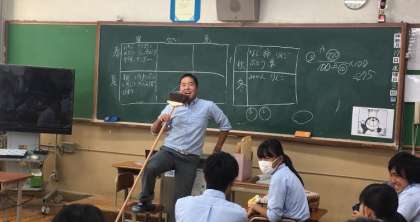 3組ではお誕生日の人がいたので、前でほうきをマイクにし、ロック調で「ハッピーバースディ」の歌を熱唱くれた人がいました。とても和やかな雰囲気です。