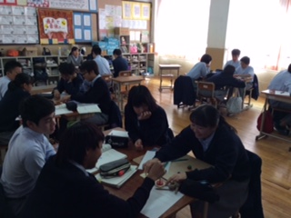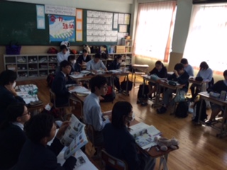 2組は公民、マスメディアを題材に、政党の意味と役割について学びました。