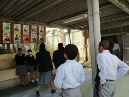 選挙の立候補者のポスターが貼られました。1年生は始めて見ますね。