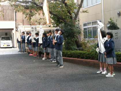 朝早くから、立候補者・応援の生徒が最後のお願いをしていました!