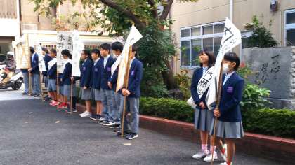 いよいよ明日,生徒会本部役員を決める選挙が行われます。登校する生徒に元気よく挨拶する姿が見られました。