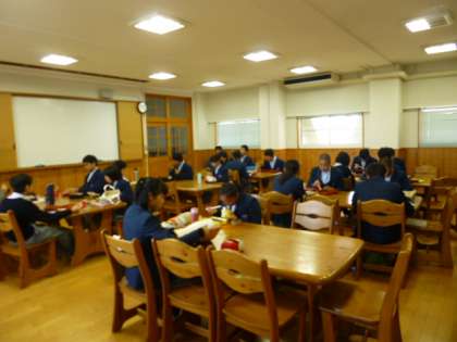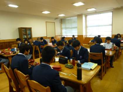 本日の昼休み、生徒会本部役員新旧引継会がいきいき交流ルームで行われました。先日2日(金)に行われた選挙にて当選した新本部役員と旧本部役員が一堂に会し、初めての顔合わせとなりました。