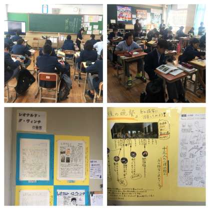レオナルド・ダ・ヴィンチの調べ学習をいくつか廊下の学年掲示板に貼ってあります。