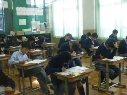 社会科のテスト風景です。みんな真剣そのもの!頑張れ!1年生!