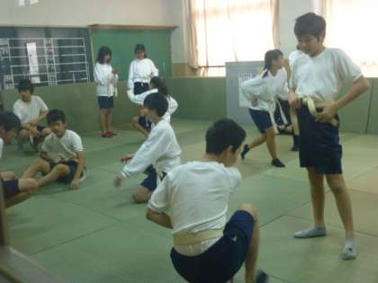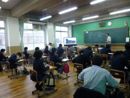 2組は英語(ペアで会話中)、3組は数学、4組は保健体育です。