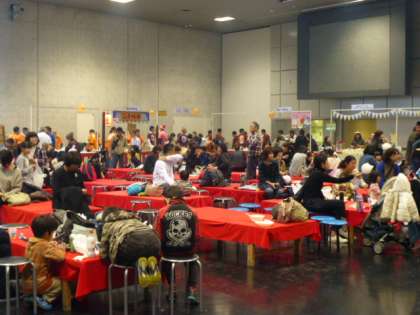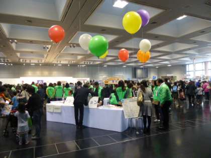 PTAフェスティバルが行われた会場(みやこメッセ)は、すごい熱気に包まれていました。嘉楽中学校からもPTA本部役員の方々が、ステージ発表や各ブースでのお手伝い等、活躍されている場面が目立ちましたね!お疲れ様でした。お越しになった皆さんも、ほのぼのした雰囲気に思わず笑顔がこぼれていましたね。参加していた小さなお子さんも本当に楽しそうでした!