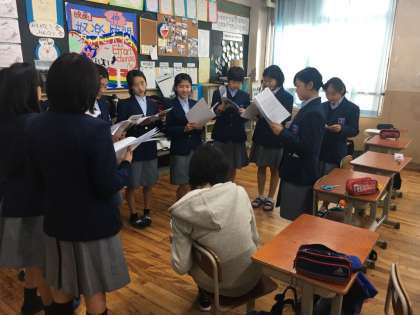 楽譜を作成したあとにソプラノ、アルト、男子と3パートに教室を分かれ、