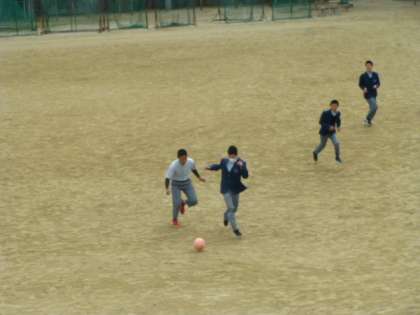 昼休みの様子です。寒い中ですが、みんな元気です。サッカーやバスケットボールを楽しんだり、ボール当てをして元気に汗をかいていました。元気が一番!しっかり体を動かして、元気モリモリ頑張ろう!昨日から3年生がテストのため、1・2年だけの時間になっています!いつもより、グランドが広く使えているかな!