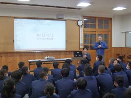 高校の話のあとは、学校の進路担当の教師とともに「働くとは」について考えました。