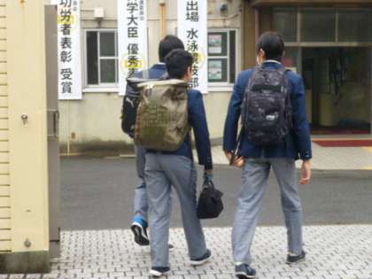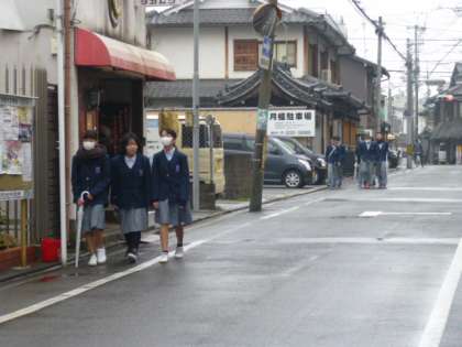 小雨が降る中、みんな元気に登校しています!