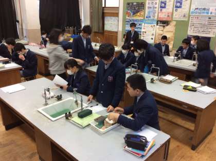 4組は理科、目の前の物体がなんなのか、叩いたり、擦ったりしました。