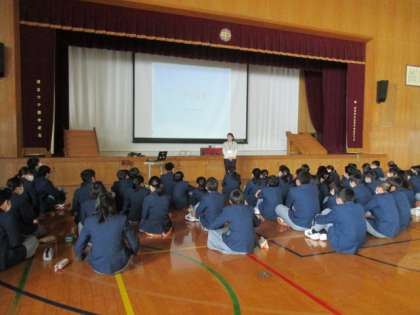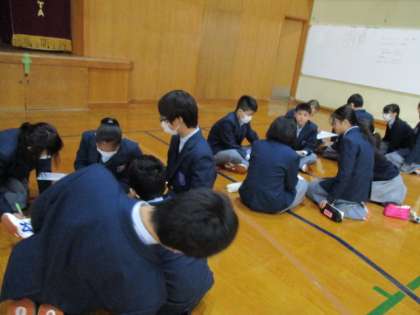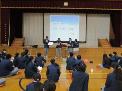 本日は学年道徳を行いました。東日本大震災のお話を聞き、生徒の俳句をもとに、考えたことを共有しました。また、自分たちにできることは何かを考えました。支援と言うこと以外に、教訓を生かす生き方、今を大切にすることなど共有することができました。