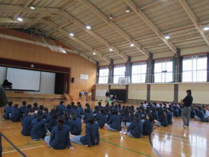 送る会に向けて1,2年合同のリハーサルを行いました。来週の火曜日がいよいよ送る会ですね。色々な係で準備をしてくれています。いい会になるよう力を出し合いましょう。