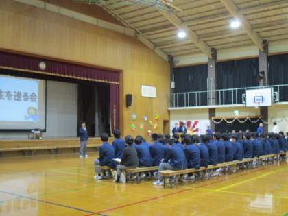 3年生を送る会の様子です。どの学年もそれぞれの力を発揮し、とてもあたたかい、いい会となりました。生徒会のメンバーもずっと準備をしてきたことも感じましたね。