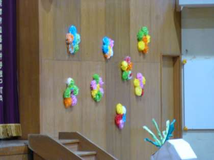 体育館の舞台横もきれいに飾り付けされていました!
