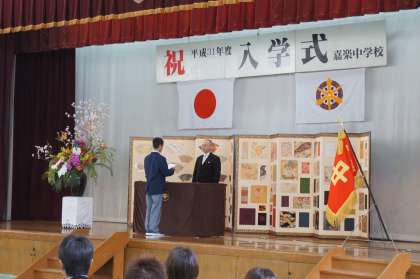 学校長の式辞、PTA会長の祝辞のあと、在校生の歓迎の言葉、そして新入生の誓いの言葉と続きました。歓迎の言葉、誓いの言葉ともに、堂々とした立派な態度でした。