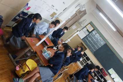 3組では、A5の紙5枚を使って、いかに高さを出せるかを班で知恵を出し合い競いました。