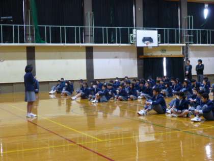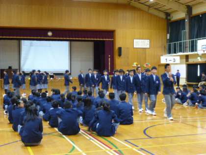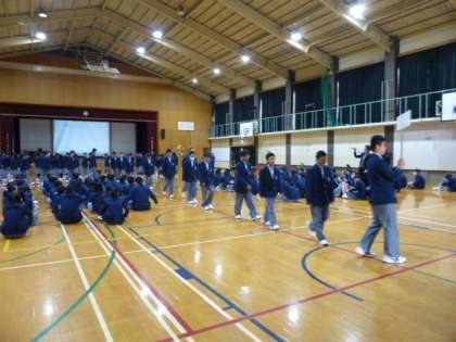 体育館に残った2・3年生に生徒会本部からお礼の言葉を述べ、すべてのプログラムが終了です。