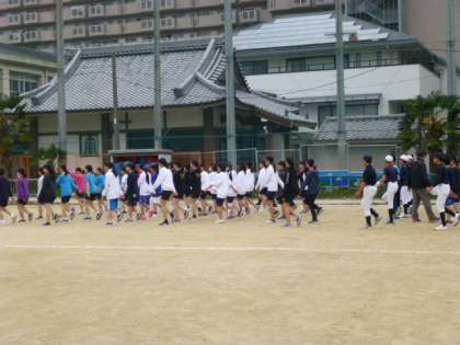 少しずつ良くなってきましたね!みんなで大きな声をかけて、縦(前後)・横をしっかり合わせて行進しましょう!