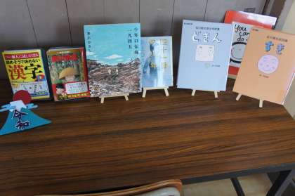 また4月に国語で学習した詩人の谷川俊太郎さんの詩集や、現在学習している作家井上ひさしさんの本も置いています。