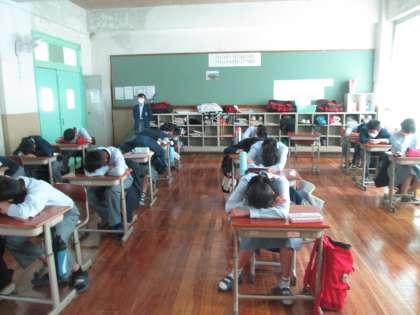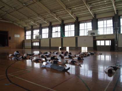 今日も1年生の様子を中心にしたupです。1年生は、ひとクラスは教室で、もうひとクラスは体育館で「すやすやday」を体感していました。教室の様子を見慣れている者にとっては、体育館での「すやすやday」はなかなか斬新でした(笑)。でも、体育館の「すやすやday」は、広々とした場所ですやすやしていたので、とても気持ちよさそうでした。これは、なかなか体験できないことなのでは?!という感じで、ちょっと生徒たちがうらやましかったです。