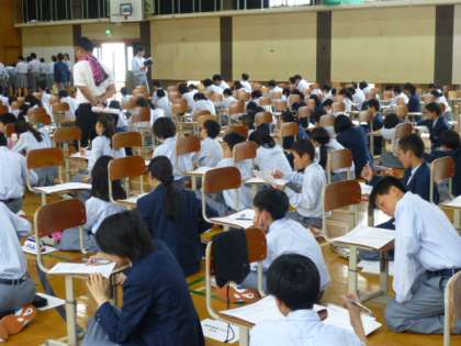 検定を待っている間、フロアで課題に取り組みます。今回の教科は数学です。第1回定期テストも近づいてきました。みんな頑張って取り組んでいます。